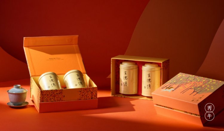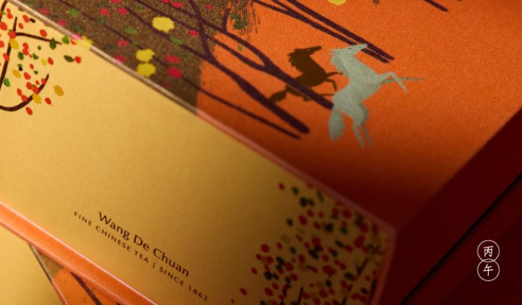 精裝書型紙盒,盒蓋以畫布裱褙、並透過絲網印刷結合燙金工藝,搭配丙午新春限定潤金色茶罐,整體展現典雅細緻的質感。馳心禮盒透過茶藝工法與發酵層次調和之美,藉德傳經典茶品迎香安尚烏龍,與臺灣高山烏龍,探索臺灣好茶醇韻。