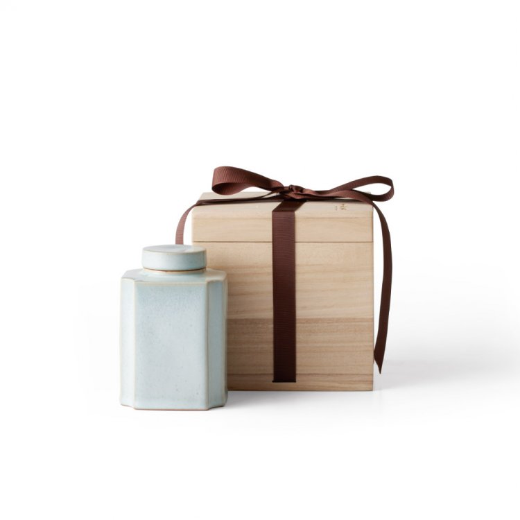 存藏於以青瓷鐵胎土製成的八方青瓷茶倉內